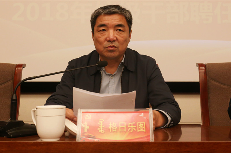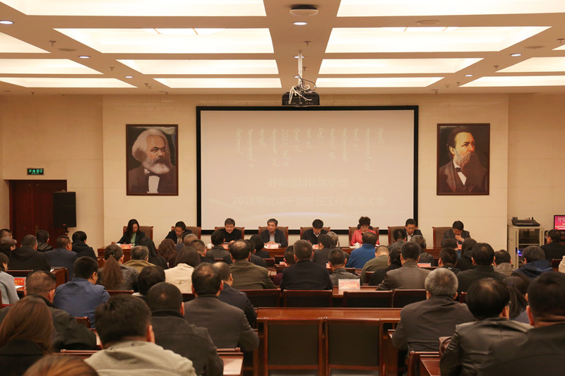 10月23日下午,學校在圖書館一樓報告廳召開了2018年處級干部聘任工作動員大會。校黨委書記孫國權,黨委副書記、校長格日樂圖,黨委副書記胡春梅,黨委委員、副校長阿拉坦倉,黨委委員、副校長賀希格吉雅,黨委委員、紀委書記朝克,黨委委員、組織統戰部部長包君,黨委委員、紀委副書記、監審處處長王玉玲出席會議。會議由黨委副書記、校長格日樂圖主持。