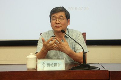 我校“學習貫徹習近平新時代中國特色社會主義思想和黨的十九大精神干部培訓班”第九次講座于7月24日在圖書館一樓報告廳舉行。阿拉坦倉副院長以“專業發展與學科建設”為主題,展開精彩講座。學校黨委副書記胡春梅主持培訓會,校領導、全體處級干部、科級干部聆聽了講座。