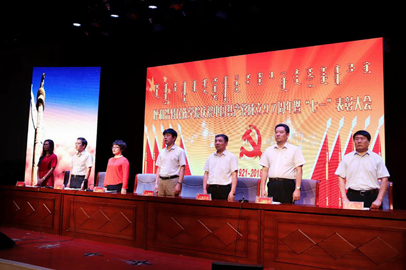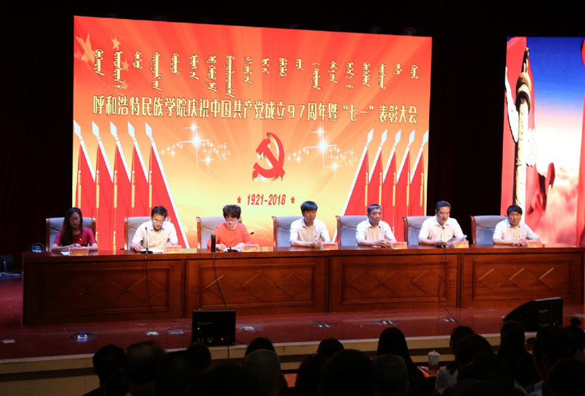 為深入學習貫徹習近平新時代中國特色社會主義思想和黨的十九大精神,充分發揮先進模范的標桿作用,持續推進“兩學一做”學習教育常態化、制度化,我校黨委于6月29日在圖書館二樓報告廳召開“慶祝中國共產黨成立97周年暨“七一”表彰大會”。學校黨委書記孫國權,院長格日樂圖,黨委副書記胡春梅,副院長阿拉坦倉、副院長賀希格吉雅、紀委書記朝克、黨委委員包君、黨委委員王玉玲出席會議,全體黨員、處級干部共計500余人參會。會議由朝克書記主持。