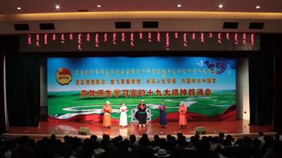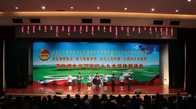五月的春風(fēng)情深意暖,五月的花海流溢飄香。為紀(jì)念五四運(yùn)動(dòng)99周年和建團(tuán)96周年,弘揚(yáng)五四精神,激勵(lì)全校青年奮發(fā)進(jìn)取,5月4日下午,我校團(tuán)委在圖書(shū)館二樓報(bào)告廳舉辦了“堅(jiān)定理想信念 放飛青春夢(mèng)想 書(shū)寫(xiě)人生華章 共圓偉大中國(guó)夢(mèng)”青年師生學(xué)習(xí)黨的十九大精神朗誦會(huì)。內(nèi)蒙古自治區(qū)黨委第四巡視組領(lǐng)導(dǎo),學(xué)校黨委書(shū)記孫國(guó)權(quán),黨委副書(shū)記、院長(zhǎng)格日樂(lè)圖,黨委副書(shū)記胡春梅,副院長(zhǎng)阿拉坦倉(cāng),副院長(zhǎng)納麗娜出席朗誦會(huì),各職能部門(mén)負(fù)責(zé)人,各系部黨、團(tuán)總支書(shū)記和學(xué)生代表共計(jì)750余人觀看了朗誦會(huì)。