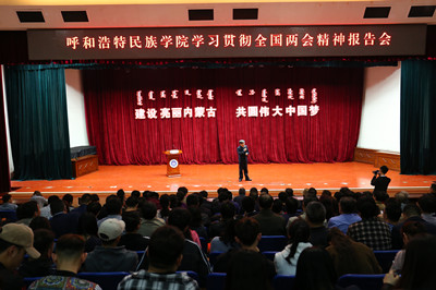 阿拉坦倉教授結(jié)合自己的所思所悟,以詳實的數(shù)據(jù)、豐富的案例,向與會師生介紹了習(xí)近平總書記重要講話精神、全國政協(xié)會議基本情況、全國政協(xié)會議精神與體會、學(xué)習(xí)政府工作報告的感受和自己參政履職等五個方面的情況。阿拉坦倉教授指出,這次全國兩會是在重要時刻召開的一場世人矚目、令人振奮的落實黨的十九大精神的大會。他希望廣大師生能夠統(tǒng)一思想、深化認(rèn)識、提高政治站位,充分認(rèn)識學(xué)習(xí)貫徹兩會精神的重大意義,認(rèn)真主動地學(xué)習(xí)貫徹兩會精神,迅速掀起學(xué)習(xí)熱潮,不斷把學(xué)習(xí)宣傳貫徹習(xí)近平總書記重要講話精神引向深入。阿拉坦倉教授寄語全校師生,要積極融入新時代的潮流中,不辜負(fù)時代,爭做新時代的見證者、開創(chuàng)者、建設(shè)者。