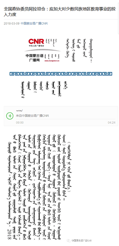 《民族畫報(bào)》、人民網(wǎng)、內(nèi)蒙古衛(wèi)視、《內(nèi)蒙古日報(bào)》(蒙漢文版)、中國蒙古語廣播電臺(tái)、內(nèi)蒙古廣播電臺(tái)(蒙漢語頻道)、內(nèi)蒙古新聞網(wǎng)等十幾家新聞媒體廣泛報(bào)道了阿拉坦倉副院長的參會(huì)議政情況,引起了社會(huì)各界的強(qiáng)烈反響。