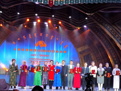 大賽分大學(xué)生組、個(gè)人表演(成人)組、中小學(xué)生組、團(tuán)體表演組四類。經(jīng)初賽、復(fù)賽、決賽激烈角逐,中央民族大學(xué)、西北民族大學(xué)、內(nèi)蒙古大學(xué)和呼和浩特民族學(xué)院的24名學(xué)生入圍決賽。決賽由自我介紹、配音段表演、答題和個(gè)人才藝展示等環(huán)節(jié)組成,最終,我校傳媒系2015級(jí)播音與主持藝術(shù)班的烏日漢獲得第一名,斯日古楞朝克圖獲得第二名,格根珠拉獲得第三名,另有7名同學(xué)獲得優(yōu)秀獎(jiǎng),我校同時(shí)獲得優(yōu)秀組織獎(jiǎng)榮譽(yù)稱號(hào)。