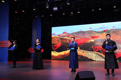 演出在馬頭琴齊奏《鄂爾多斯高原》中拉開(kāi)帷幕。蒙語(yǔ)詩(shī)朗誦《偉大的黨》抒發(fā)了莘莘學(xué)子對(duì)黨的無(wú)限愛(ài)戴;藏族學(xué)生舞蹈《扎西德勒》、蒙漢詩(shī)朗誦《啟程》激情澎湃,寓意深遠(yuǎn);詩(shī)朗誦《廉潔頌》慷慨激昂,充滿正能量;蒙語(yǔ)歌曲《我們?cè)谝黄稹飞鷦?dòng)活潑,純樸甜美;漢語(yǔ)歌曲《映山紅》、《中國(guó),中國(guó),鮮紅的太陽(yáng)永不落》渾厚雄壯,表達(dá)了青年學(xué)子不忘初心,繼續(xù)奮斗的堅(jiān)定信念;最后,在嘹亮高昂的教師代表男女對(duì)唱《守望相助》中文藝匯演圓滿落下帷幕。