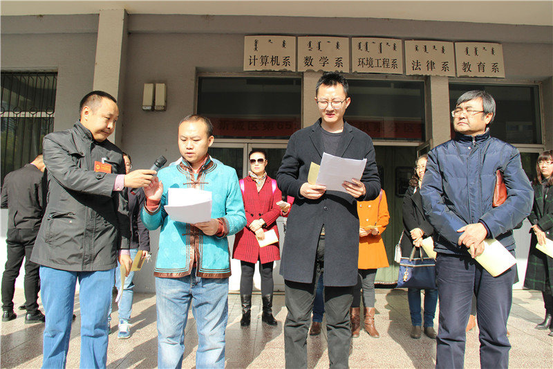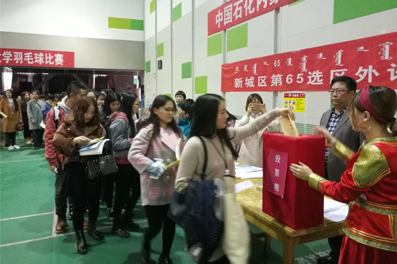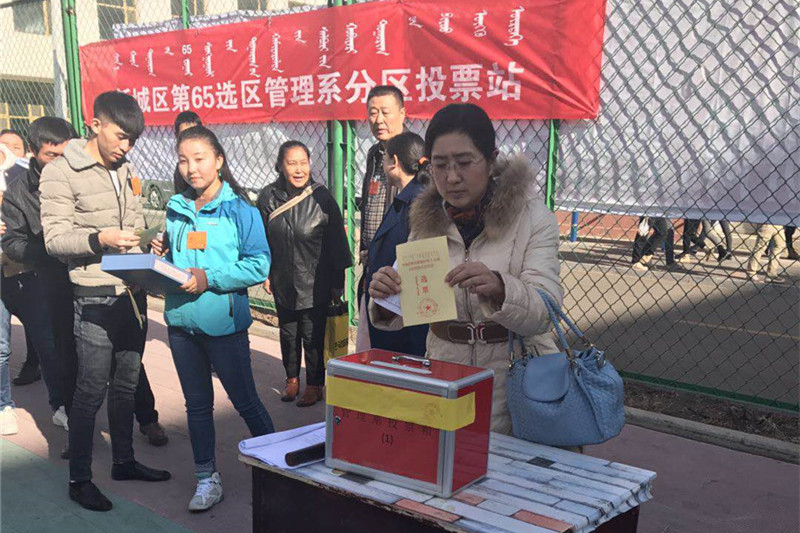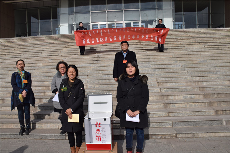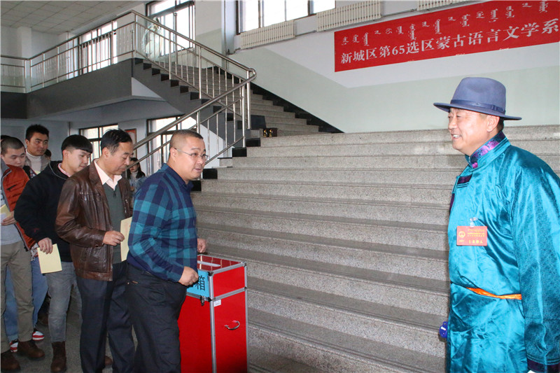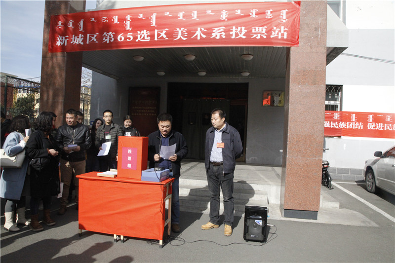 按照新城區人大選舉委員會統一部署,11月8日中午,我校舉行了新城區第十七屆人民代表大會第65選區代表選舉大會。自治區、呼和浩特市、新城區三級督查組成員到校督查指導了選舉工作。全校設主會場1個、投票點15個,共由8450名選民參加投票選舉。選區主會場設在圖書館二樓報告廳,學校黨委班子成員、機關工作人員和離退休人員參加了主會場的投票。主會場的選舉大會由第65選區選舉工作領導小組副組長、黨委辦公室主任吳阿古拉主持,各投票站的選舉工作由系部黨總支書記主持。