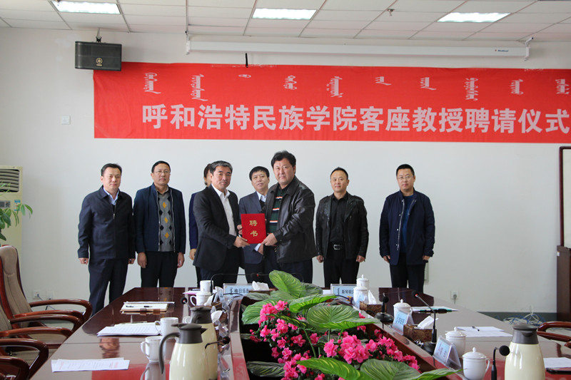 格日樂圖院長對斯琴朝克圖教授能夠成為我??妥淌诒硎緹崃覛g迎和誠摯感謝,并為斯琴朝克圖教授頒發(fā)了客座教授聘任書。隨后,格院長向斯琴朝克圖教授簡要介紹了學校的辦學歷史、升本以來的發(fā)展變化、民族特色鮮明的校園文化及優(yōu)勢學科專業(yè)等。格院長表示,學校通過聘請客座教授、兼職教授,能夠借智借力從而有效改善師資隊伍的結(jié)構(gòu)和質(zhì)量,切實推進學校師資隊伍建設、專業(yè)建設、課程建設及教學科研工作的良性發(fā)展。