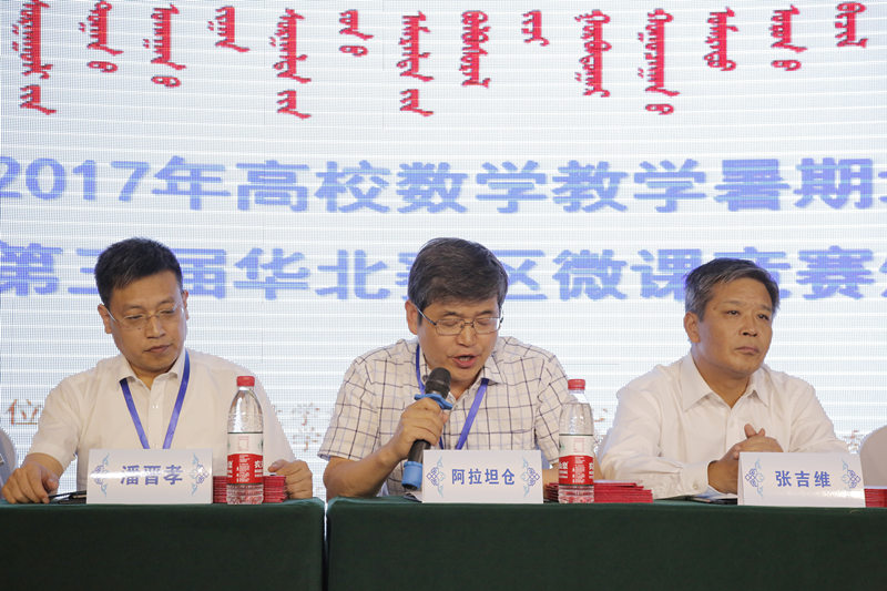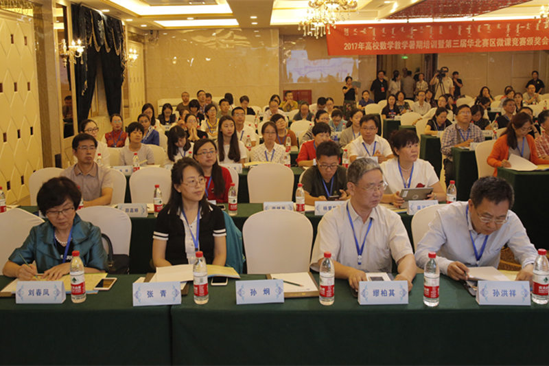 由北京高校數學教育發展研究中心、全國微課程教學設計大賽華北賽區組委會主辦、我校及內蒙古自治區高等教育學會數學教育分會承辦的2017年高校數學教學暑期培訓暨第三屆華北賽區微課競賽頒獎會于2017年8月23日—25日在美麗的呼和浩特市舉行,內蒙古、北京、天津、河北和山西等華北地區40多所高校的140多名專家、學者和教師參加。本次會議由開幕式、大會報告、微課作品展示和閉幕式四個部分組成。