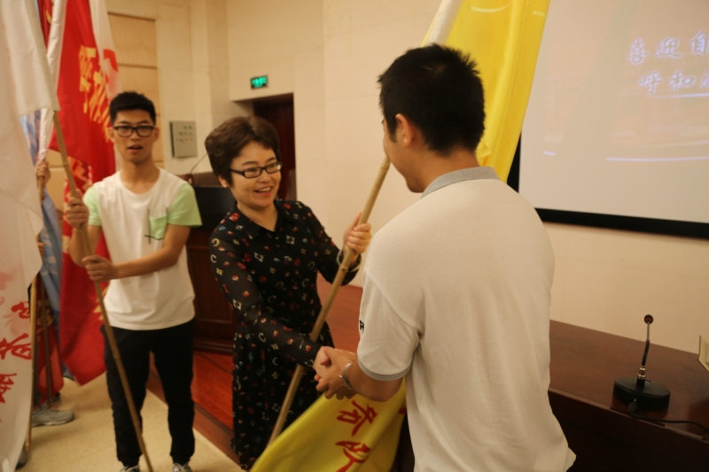 啟動儀式在莊嚴(yán)的國歌聲中正式開始,美術(shù)系團(tuán)總支書記白永泉老師代表暑期“三下鄉(xiāng)”社會實(shí)踐活動指導(dǎo)教師、傳媒系冬金嘎日布同學(xué)代表暑期“三下鄉(xiāng)”社會實(shí)踐隊(duì)員先后發(fā)言。隨后,胡春梅副書記為暑期社會實(shí)踐服務(wù)隊(duì)授旗。