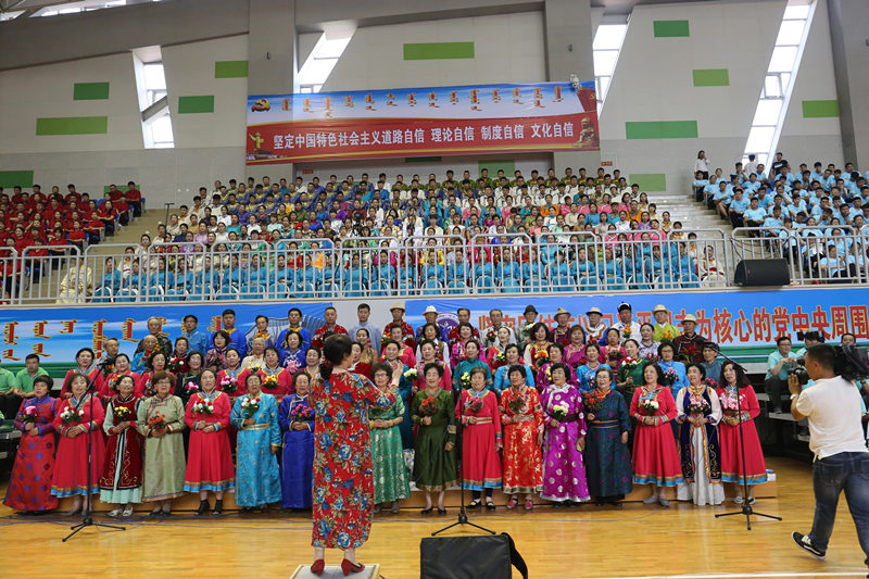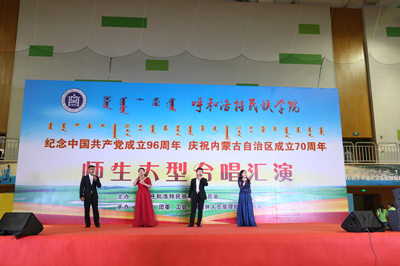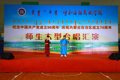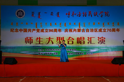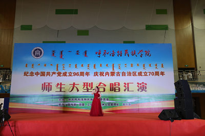 此次師生大型合唱匯演活動,以歌聲紀(jì)念中國共產(chǎn)黨成立96周年光輝歷史,用實際行動推進學(xué)校“兩學(xué)一做”學(xué)習(xí)教育常態(tài)化制度化工作,有效增強了全校師生的凝聚力和向心力。同時,本次活動是學(xué)校慶祝內(nèi)蒙古自治區(qū)成立70周年的重要活動,學(xué)校上至領(lǐng)導(dǎo),下至各民族師生,高度重視,積極參與,經(jīng)過前期的排練、篩選等環(huán)節(jié),最終為全校師生和社會群眾呈現(xiàn)了一場視覺和聽覺的盛宴。