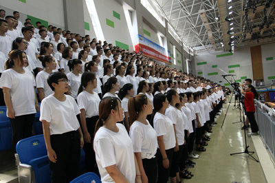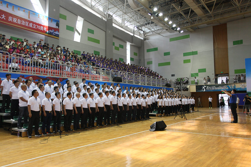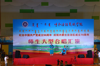 為紀(jì)念中國共產(chǎn)黨成立96周年和內(nèi)蒙古自治區(qū)成立70周年,以優(yōu)異成績迎接黨的十九大勝利召開,根據(jù)學(xué)校《紀(jì)念自治區(qū)成立70周年活動方案》和《“兩學(xué)一做”學(xué)習(xí)教育常態(tài)化制度化實施方案》,2017年6月30日下午,我校在體育館三樓室內(nèi)籃球館舉辦了以“紀(jì)念中國共產(chǎn)黨成立96周年慶祝內(nèi)蒙古自治區(qū)成立70周年”為主題的師生大型合唱匯演。全校職能部門、各系部師生代表共2000多人參加演出。