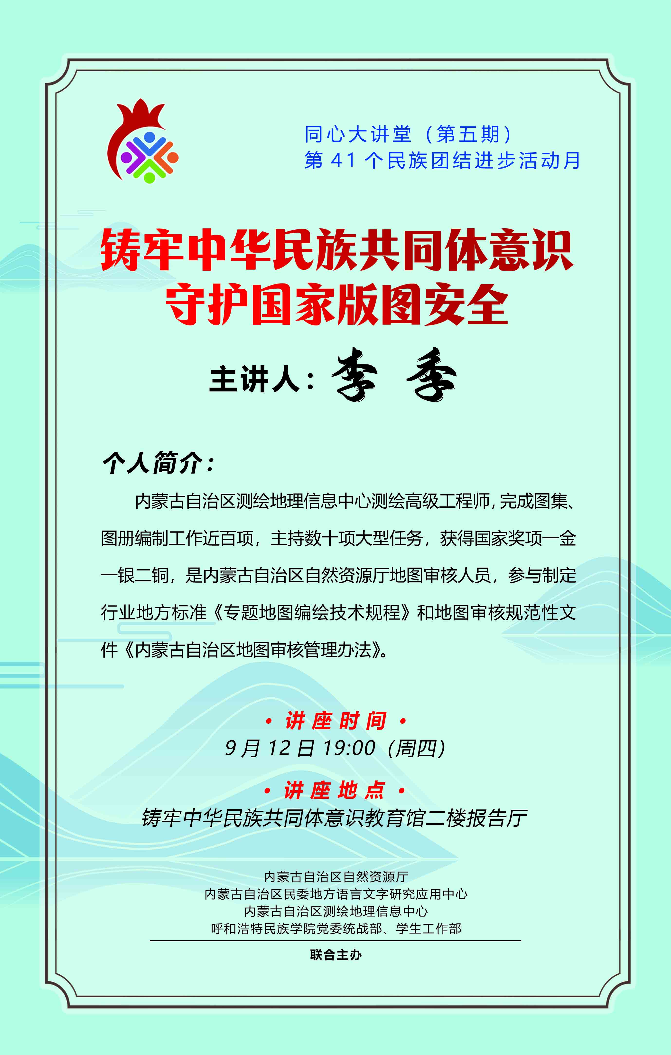 李季:內蒙古自治區測繪地理信息中心測繪高級工程師,完成圖集、圖冊編制工作近百項,主持數十項大型任務,獲得國家獎項一金一銀二銅,是內蒙古自治區自然資源廳地圖審核人員,參與制定行業地方標準《專題地圖編繪技術規程》和地圖審核規范性文件《內蒙古自治區地圖審核管理辦法》。