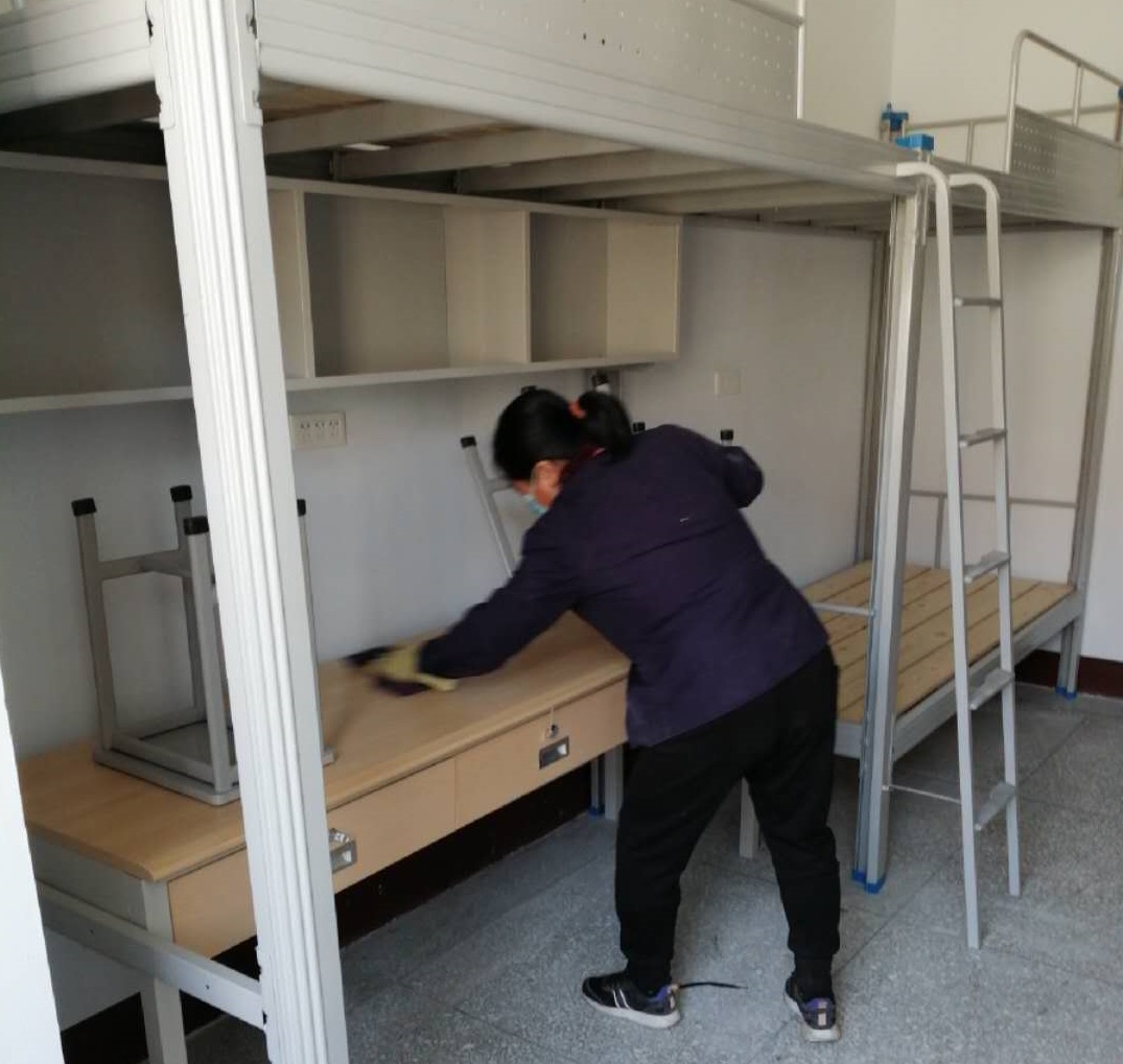 對我校學生公寓樓的門廳、走廊、洗漱間、衛(wèi)生間等公共區(qū)域進行了徹底地衛(wèi)生打掃,并每天進行了2次噴灑消毒,在現(xiàn)有公共區(qū)域清潔消毒的基礎上,對學生宿舍內(nèi)也進行全面消毒,保證學生住宿生活環(huán)境的衛(wèi)生和安全。
