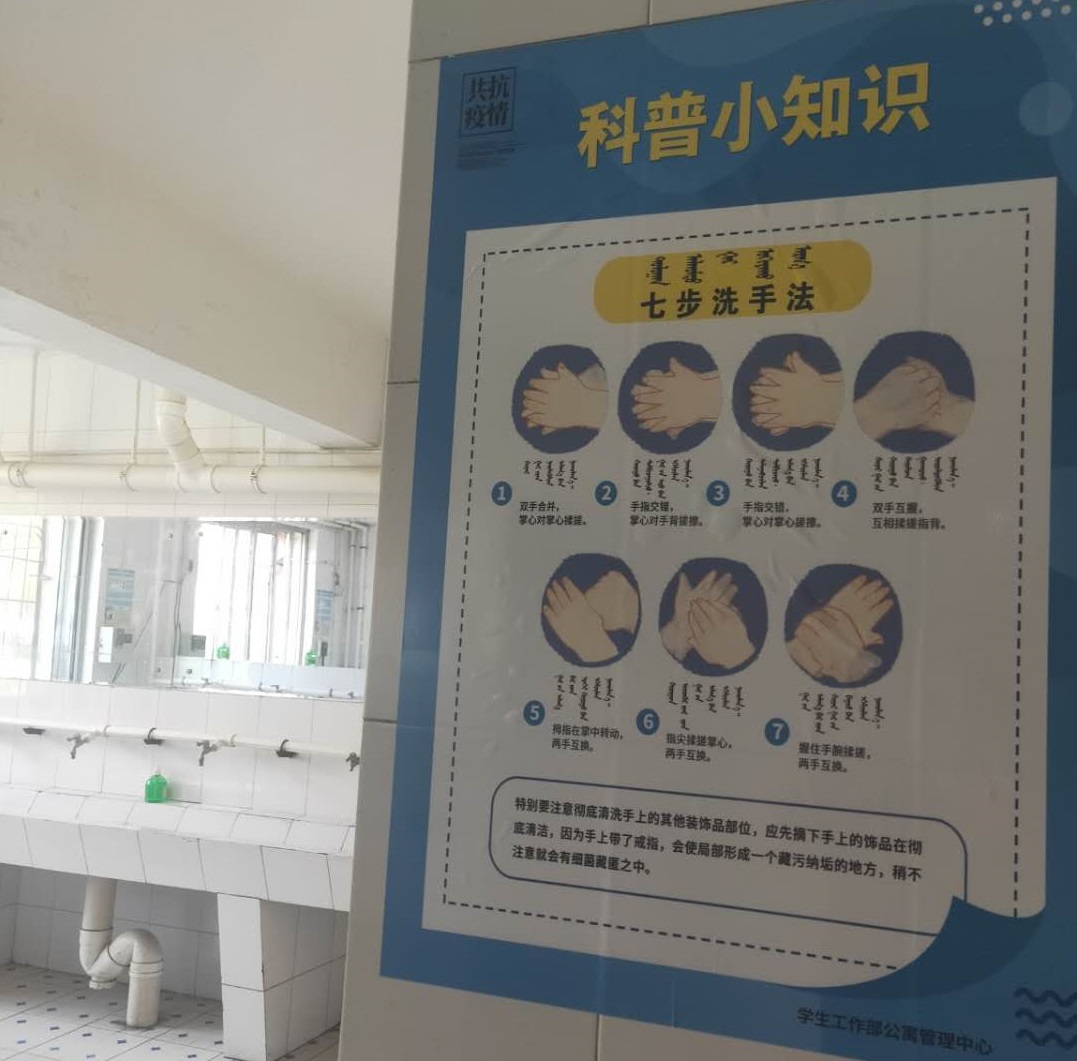為加強疫情防護宣傳教育力度,公寓門前張貼橫幅、公寓洗漱間內(nèi)張貼健康小知識、有針對性地對學生進行疫情相關知識的宣講,助力學校疫情防控。