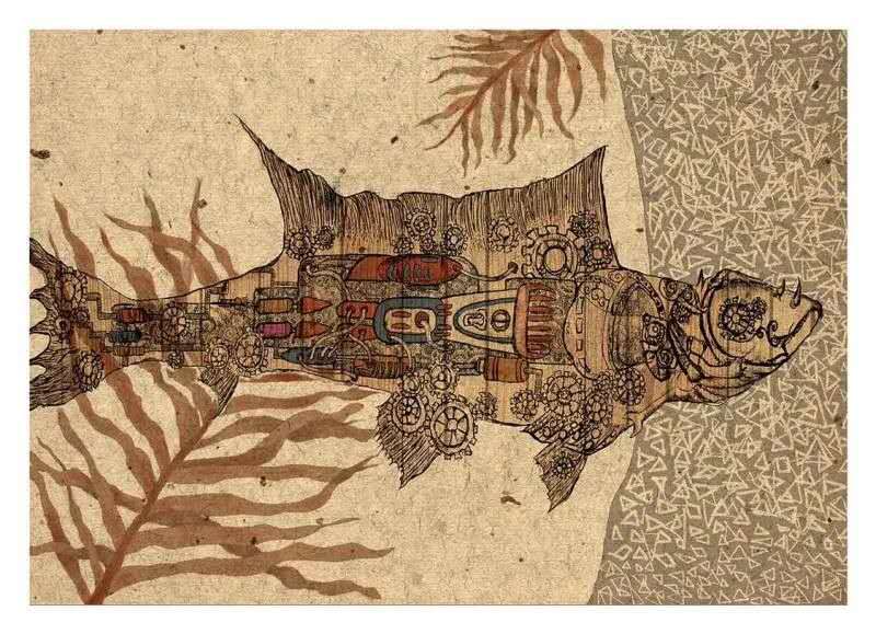 版畫 套色木刻草圖《魚》 作者:辛峙瑤 指導教師:阿茹娜
