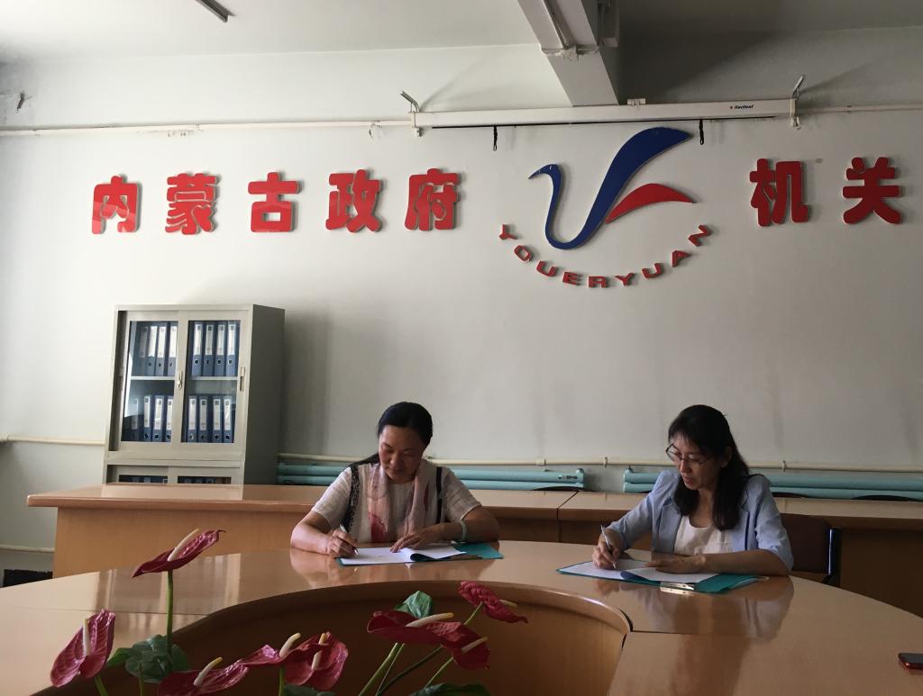 為了拓展學前教育專業校外實習實訓基地,提升學生專業技能,增強教師教研能力,7月14日上午9時,我校學前教育學院黨總支副書記其其格一行5人,前往內蒙古自治區機關事務管理局政府機關幼兒園,簽訂實習實訓基地協議書,并進行掛牌儀式。內蒙古自治區機關事務管理局政府機關幼兒園園長田勁枝、副園長蘭霞、副園長陳淑艷、副園長趙婷婷和我校教務處實踐教務科科長哈達、就業指導處就業指導科科長王慧東、學前教育學院教學科研辦公室主任朱烏英嘎、學前教育理論教研室主任石翠紅等參加了本次簽字儀式。