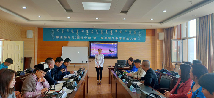 為加強學生學科理論知識和實踐教學能力,結合學校有關要求,蒙古學學院(翻譯學學院)于9月20日上午8時在綜合樓301室舉辦了第一屆師范生教學技能大賽。本次大賽邀請了呼和浩特市賽罕區教育局古日扎布研究員、內蒙古師范大學附屬中學額爾登烏拉老師、呼和浩特市蒙古族學校賀其葉勒圖老師及蒙古學學院(翻譯學學院)中學教育教研室主任常玉梅等四位老師擔任評委。蒙古學學院(翻譯學學院)院長王福清、黨總支書記周雙喜、蒙古學學院(翻譯學學院)全體老師和部分學生代表參加。