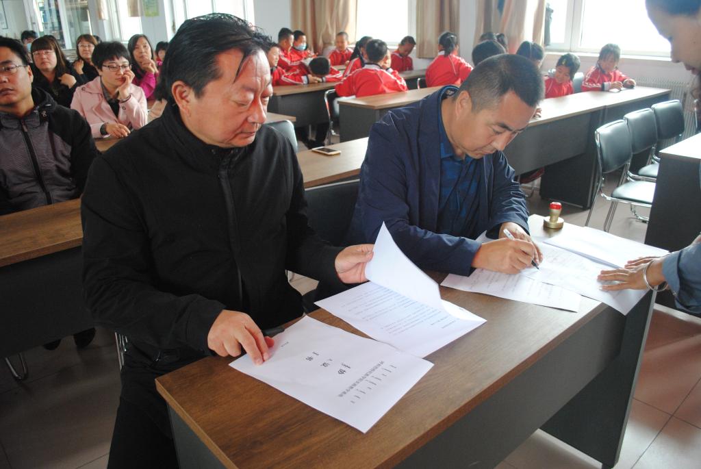 隨后,由我校領導與旗下營中心學校領導簽署實習基地協議書和就業實訓基地協議書。數學與大數據學院院長王海清教授和卓資縣教育體育局副局長李兵進行了揭牌儀式。