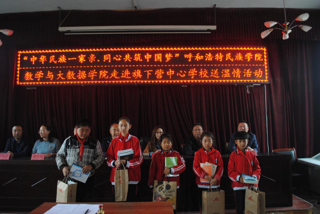 為全面深入持久開展民族團結進步創建,進一步鞏固和發展平等、團結、互助、和諧的社會主義民族關系,9月23日上午數學與大數據學院走進旗下營中心學校舉行送溫情活動。參加本次活動的有學校黨委委員、宣傳部部長王玉玲,數學與大數據學院領導班子成員,就業指導處處長包倉,全國黃大年式教師團隊成員,卓資縣教育體育局副局長李兵,旗下營中心學領導班子成員及兩校師生共300余人。