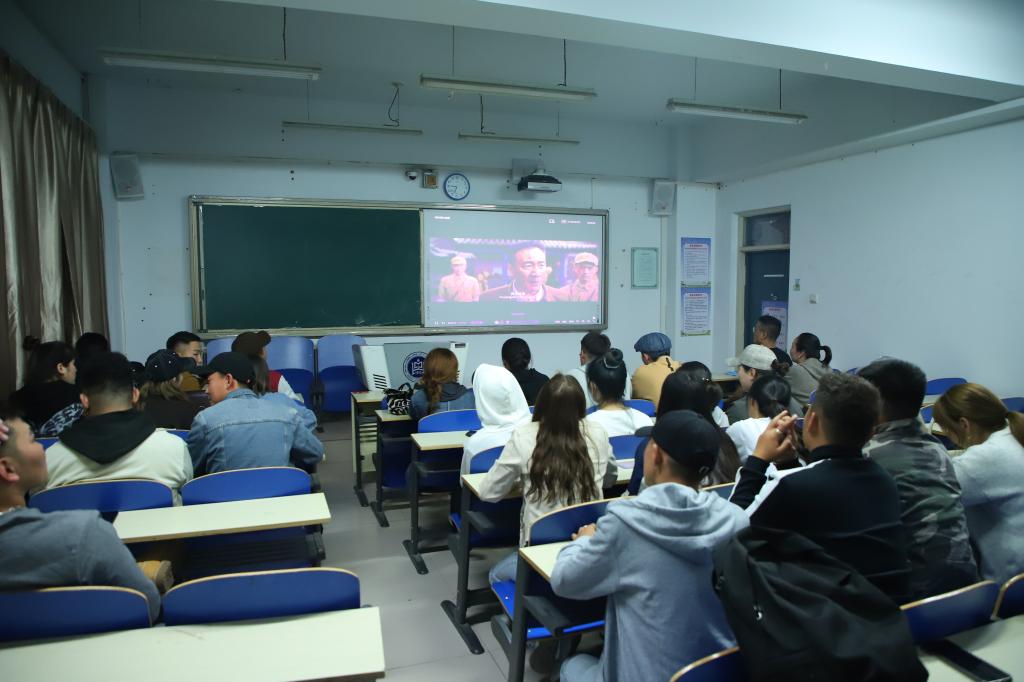 活動一開始,新聞傳媒學(xué)院團(tuán)總支旭日老師給大家講述了關(guān)于中華人民共和國成立時候的歷史背景和中國共產(chǎn)黨艱辛輝煌的奮斗歷程,接著讓學(xué)生會干部代表上臺宣讀并學(xué)習(xí)了《關(guān)于懸掛國旗慶祝中華人民共和國成立71周年的倡議書》。最后學(xué)院團(tuán)總支為大家播放了影片《我和我的祖國》。