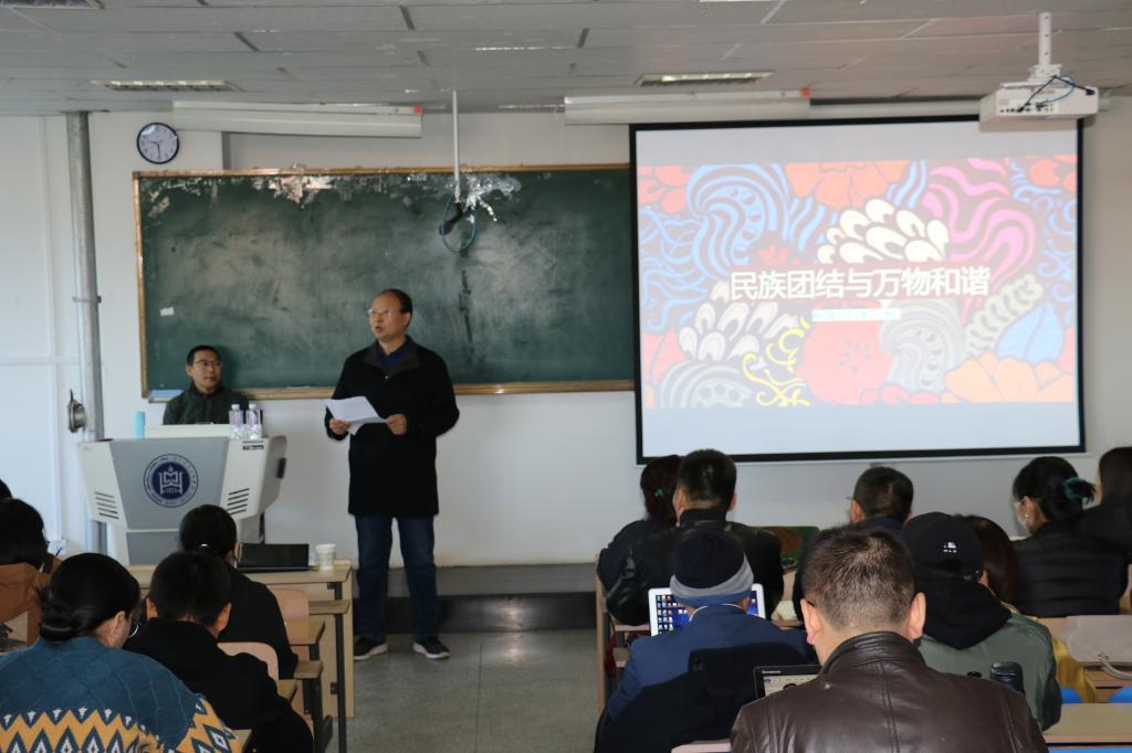 10月11日上午,在尚智樓312教室,民族學(xué)學(xué)院邀請(qǐng)全國人類學(xué)、民族學(xué)領(lǐng)域首位“長江學(xué)者”,復(fù)旦大學(xué)國家民委民族研究重點(diǎn)基地民族研究中心主任納日碧力戈教授,為廣大師生作了題為《民族團(tuán)結(jié)與萬物和諧》的學(xué)術(shù)講座。講座由包山虎院長主持。