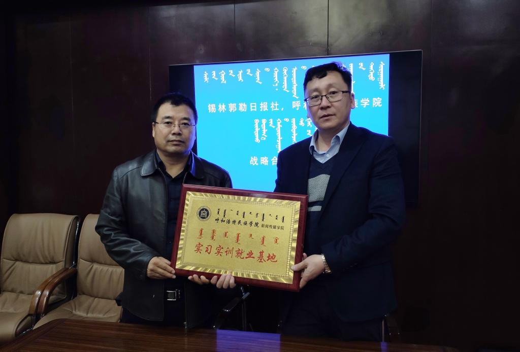 10月20日,呼和浩特民族學院新聞傳媒學院黨總支書記額爾敦畢力格、副院長安迎春等一行4人赴錫林郭勒日報社,掛牌建立實習實訓就業基地,并簽署戰略合作框架協議。