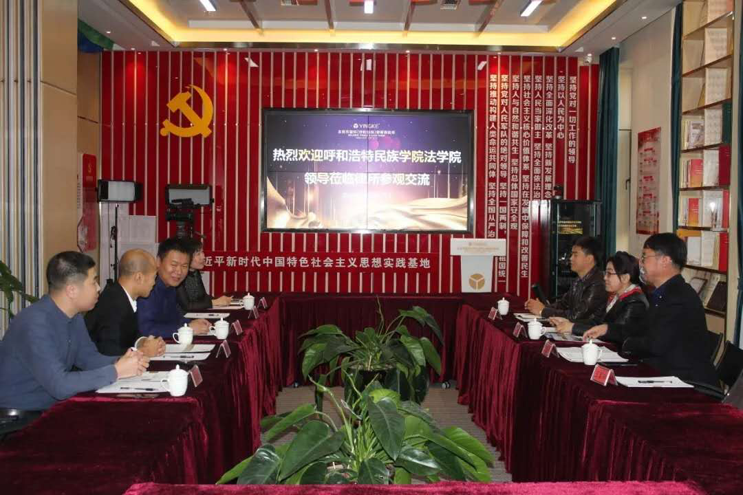 10月17日,法學(xué)院黨總支書(shū)記烏蘭其其格、副院長(zhǎng)朝克圖和教學(xué)科研辦公室主任白木仁一行三人到北京市盈科(呼和浩特)律師事務(wù)所,圍繞建立實(shí)習(xí)基地、提高學(xué)生法律實(shí)踐能力、長(zhǎng)期合作等事宜進(jìn)行了考察交流。