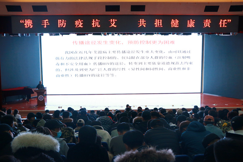 “攜手防疫抗艾 共擔健康責任”在第33個世界艾滋病日到來之際,按照自治區教育廳《關于組織開展2020年“世界艾滋病日”和“生殖健康知識進高?!毙麄鹘逃顒拥耐ㄖ穬冉腆w函(2020)29號文件精神要求,11月30日晚由學生工作部、后勤管理處在學校圖書館二樓報告廳聯合舉辦了艾滋病系列健康教育活動,本次活動得到了內蒙古自治區疾病預防控制中心和呼和浩特市新城區疾病預防控制中心的大力支持。內蒙古綜合疾病預防控制中心性病艾滋病防治科主任楊景元教授、新城區疾病預防控制中心樊建華書記、學生工作部陳青春副部長、張玉梅副部長、后勤管理處楚長利處長、于海深副處長出席本次活動,活動由醫務所劉晉雯所長主持。