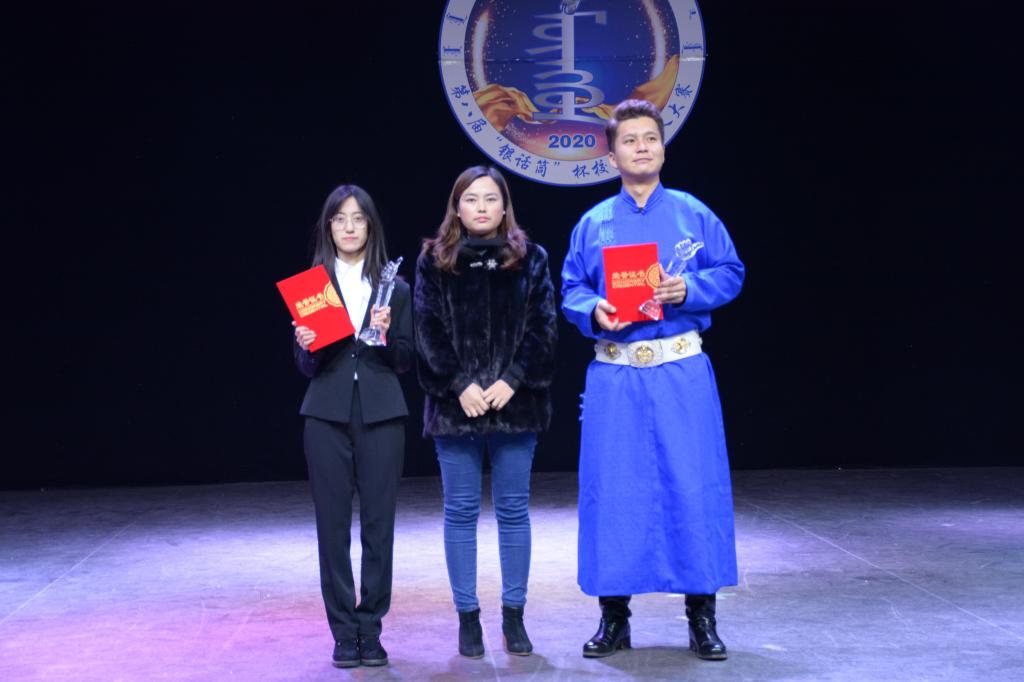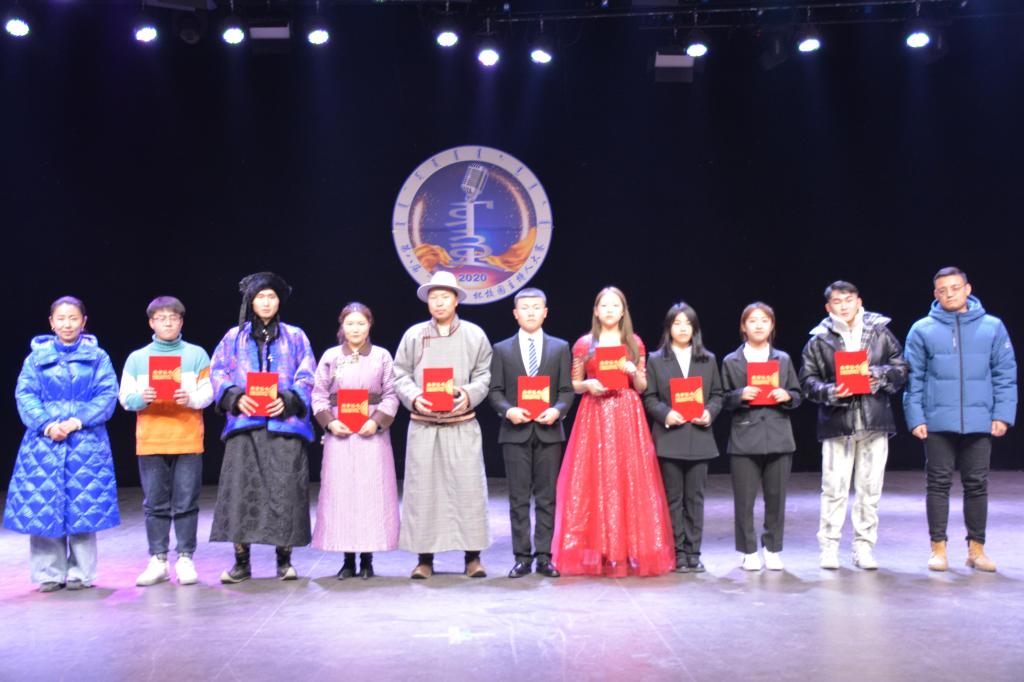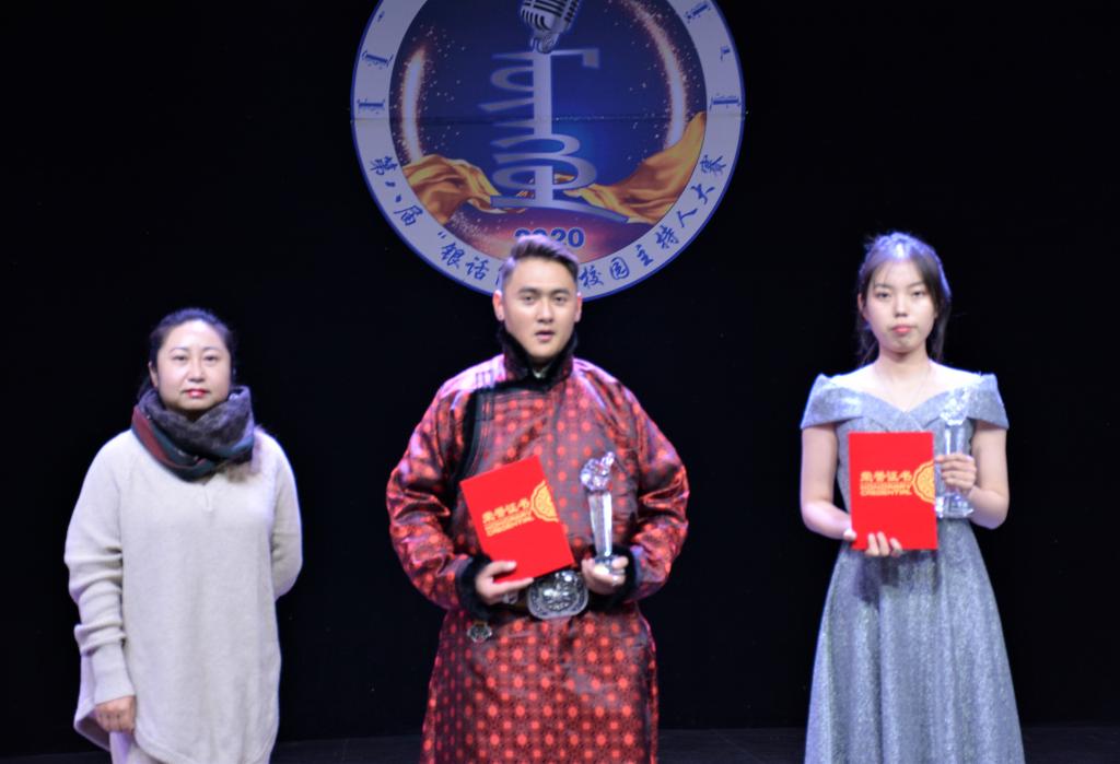 經過初賽,蒙語組和漢語組各10人進入決賽環節。決賽共分為三輪,分別是即興主持、脫口秀和才藝展示。比賽持續了三個多小時,經過評委團公平公正地評判,最終,經濟管理學院薩如拉、學前教育學院趙冉、計算機科學與信息工程學院吳曉吉分別獲得漢語組冠、亞、季軍;新聞傳媒學院阿如汗、烏力吉圖、奧嘎分別摘下蒙語專業組前三名的獎銜。