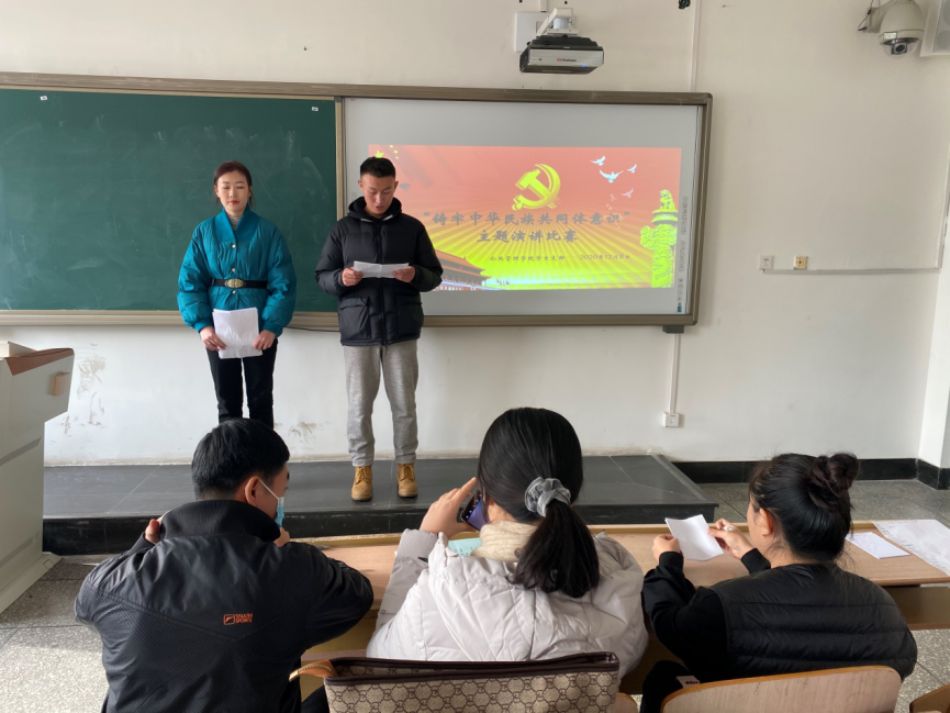 為進(jìn)一步激發(fā)廣大青年的愛國熱情,引導(dǎo)學(xué)生自覺維護(hù)民族團結(jié),鑄牢中華民族共同體意識,做好新時代民族團結(jié)的“守護(hù)者”“傳承者”與“踐行者”,公共管理學(xué)院學(xué)生黨支部于12月8日10時,在尚智樓108教室舉行了“鑄牢中華民族共同體意識”主題演講比賽。參加本次活動的評委老師有黨總支副書記額爾敦格日樂、學(xué)工辦副主任寶連和學(xué)生黨支部書記代陽老師等。