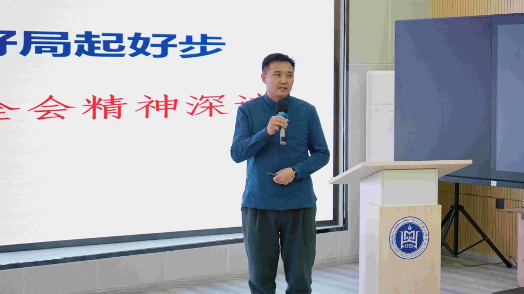 學(xué)習(xí)會(huì)上,由學(xué)校黨委宣講團(tuán)、自治區(qū)思想政治工作《張海峰名師工作室》、自治區(qū)中青年骨干項(xiàng)目《思政工作室》成員張海峰老師,結(jié)合黨的十九屆五中全會(huì)重大意義,從《中共中央關(guān)于制定國民經(jīng)濟(jì)和社會(huì)發(fā)展第十四個(gè)五年規(guī)劃和二〇三五年遠(yuǎn)景目標(biāo)的建議》的規(guī)劃起草、內(nèi)容亮點(diǎn)、突出議題與實(shí)現(xiàn)路徑等四個(gè)方面,作題為《同心同德 凝心聚力 匯集全體智慧與力量 為開啟社會(huì)主義現(xiàn)代化國家新征程開好局起好步》的專題輔導(dǎo)。