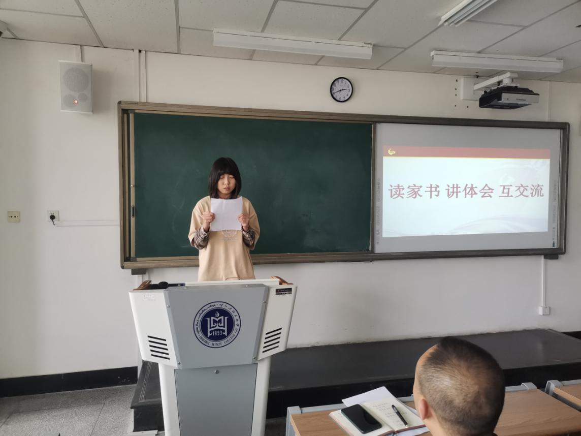 活動在激揚(yáng)的團(tuán)歌聲中拉開帷幕,白銀亮與青年學(xué)生齊唱團(tuán)歌,重溫入團(tuán)誓詞。隨后,馬嘉勃、陳靜等同學(xué)分別朗讀了老一輩革命家在革命時期的家書,并向同學(xué)們分享了心得體會和相關(guān)黨史知識。