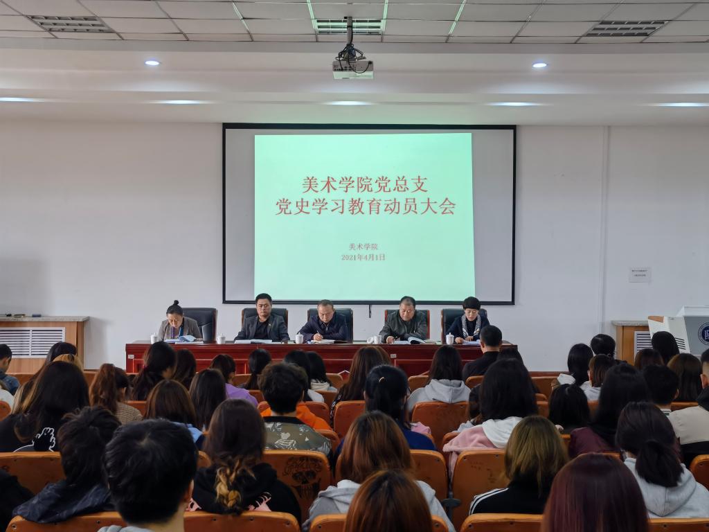 4月1日下午,美術學院黨總支在美術樓四樓階梯教室召開了黨史學習教育動員大會。會議由美術學院黨總支副書記吳利春主持,學校督導二組成員、校團委副書記白銀亮到會指導。美術學院黨總支書記包旭東,副院長高特木樂,副院長塔娜以及全體師生黨員100多人參加了會議。