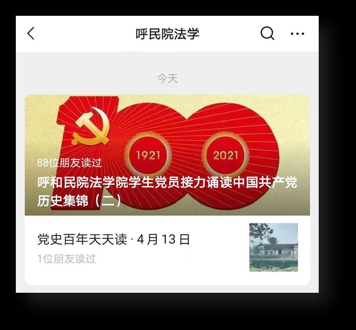 為迎接建黨100周年,深入學習習近平總書記在黨史學習教育動員大會上的重要講話精神,貫徹落實學校黨委關(guān)于開展黨史學習教育的部署要求,根據(jù)法學院《黨史學習教育工作實施方案》,我院學生黨支部從4月10日開始組織開展了“學史明理、學史增信、學史崇德、學史力行”接力誦讀黨史活動。