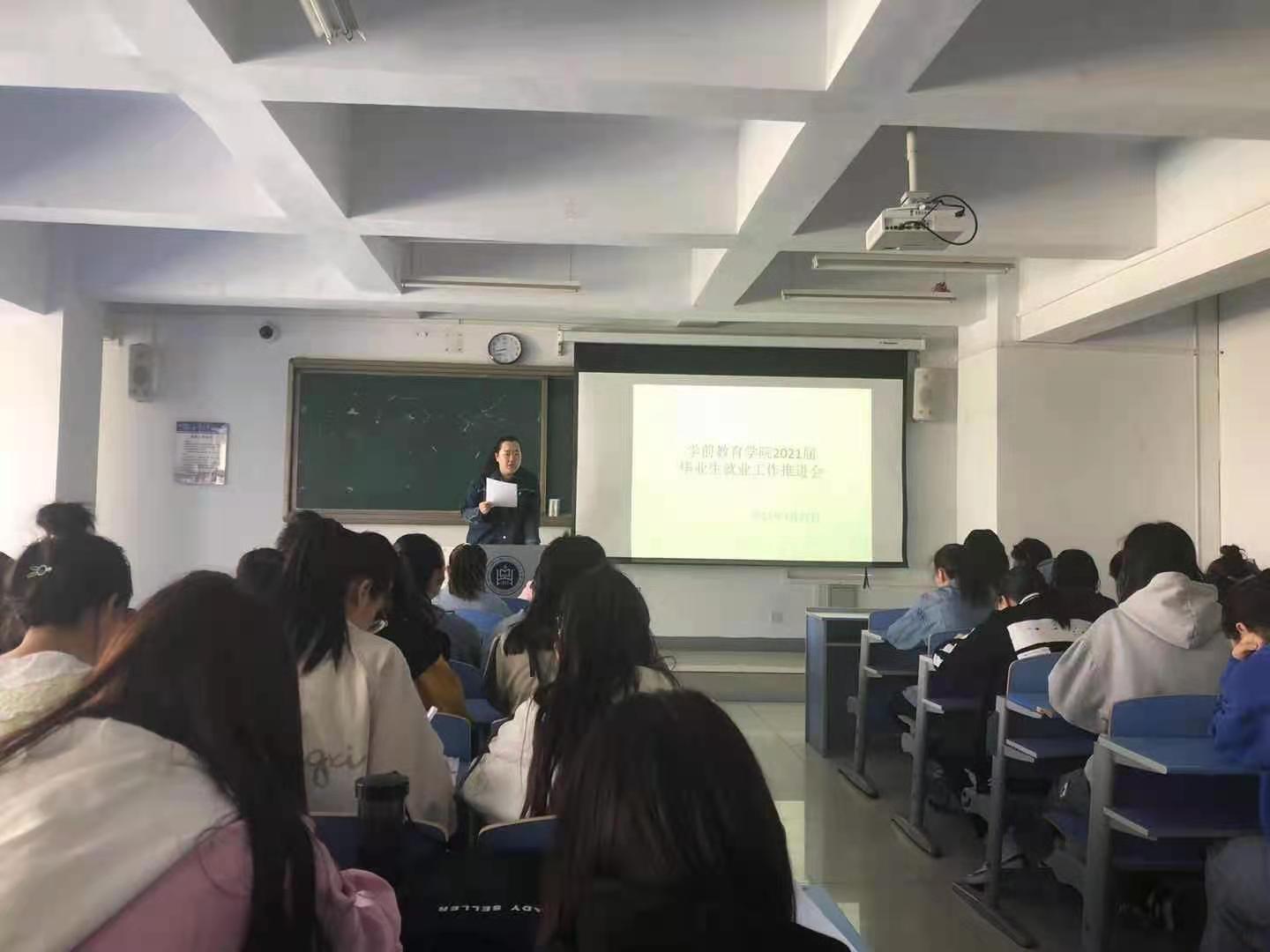 為深入貫徹落實自治區、學校關于促進高校畢業生就業工作文件精神和決策部署,推動學院進一步完善就業工作服務體系,確保我院2021屆畢業生順利、高質量就業,學前教育學院于4月27日在都林樓310、312、314教室分別組織2021屆畢業生召開了就業工作推進會。學院黨總支書記娜仁其木格老師、學院就業工作負責人張璟華老師參加會議,會議由學前教育學院畢業班班主任老師主持。