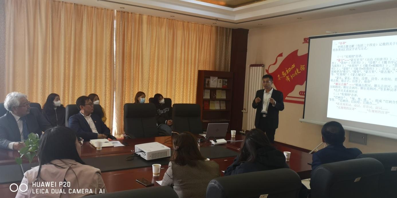 講座中,吉日嘎拉副教授主要探討了中古蒙古語(yǔ)與漢譯學(xué)的聯(lián)系以及漢譯學(xué)對(duì)研究北方民族歷史語(yǔ)言的重要性,講解了讀音相近或相同的字在音譯上出現(xiàn)錯(cuò)誤時(shí)的考證方式。