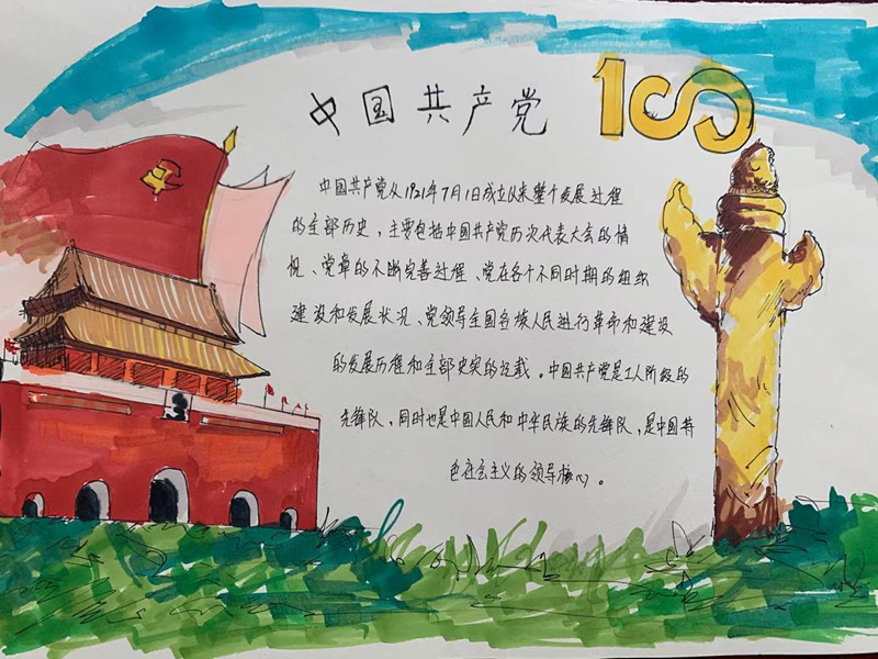 為慶祝中國共產黨成立100周年,引導學生學史明理、學史增信、學史崇德、學史力行,培養學生愛黨、愛國的情懷。4月30日,馬克思主義學院學生黨支部開展以“黨史手抄報 播散紅色種子”為主題的手抄報展評活動。 通過同學們精心設計、反復修改、用心裝飾的19幅作品,展現出中國共產黨誕生、發展、壯大的艱難歷程。此次活動,不僅讓大家回顧了中國共產黨人艱苦奮斗、不屈不撓的革命精神,更為大家提供了為黨獻禮的平臺,引領學生用自己的方法,表達對黨、對祖國的熱愛。