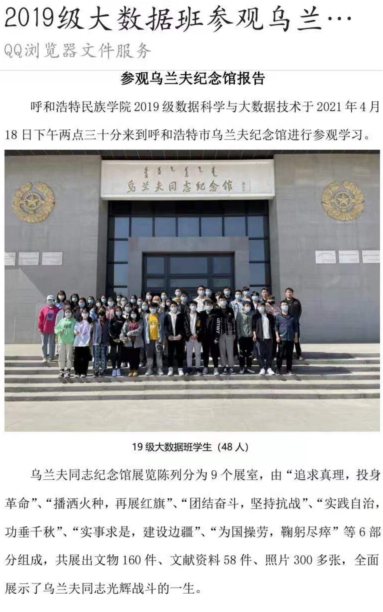在慶祝中國共產黨百年華誕之際,馬克思主義學院充分發揮課堂與實踐“雙渠道”育人作用,在“毛澤東思想和中國特色社會主義理論體系概論”和“中國近現代史綱要”等課程當中以中國共產黨建制沿革、黨史重要人物、重要會議、重大戰役、中國革命道路的探索和制度建設等諸多內容展開理論教學,同時以參觀烏蘭夫紀念館,VR數字紀念館,觀看紅色影片、學生宣講“紅色故事”等多種形式組織開展了思政課實踐教學活動。活動覆蓋2019級、2020級在校生約3600余名學生。