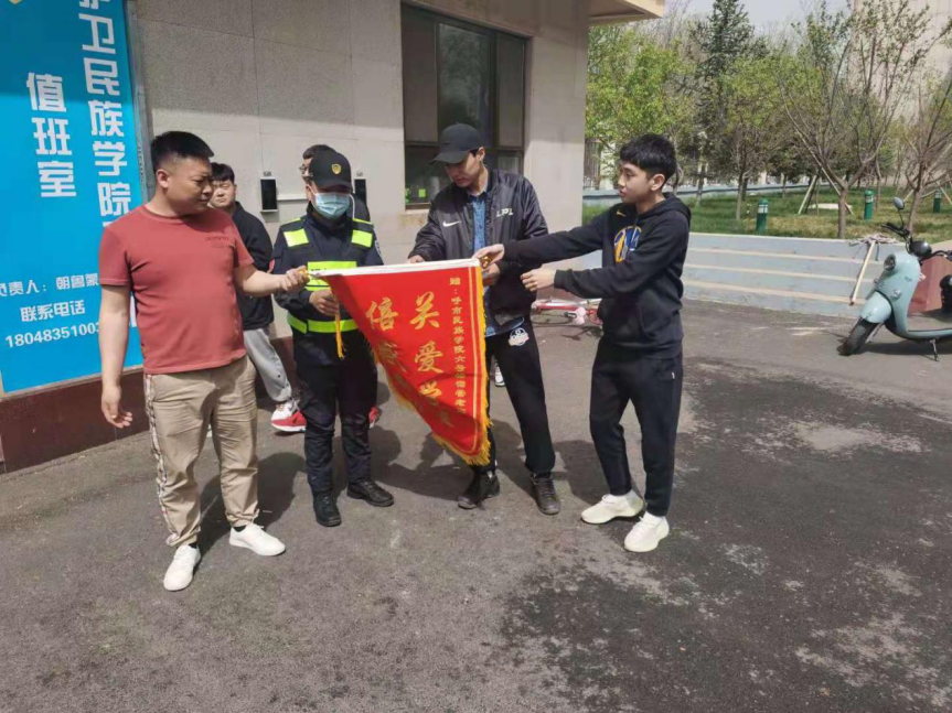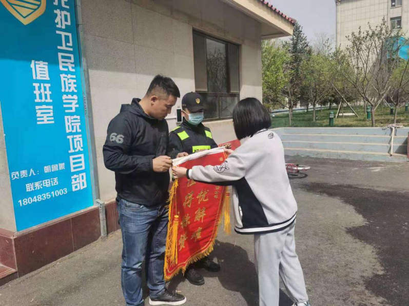 受傷學生給每日接送自己的保衛處人員送錦旗