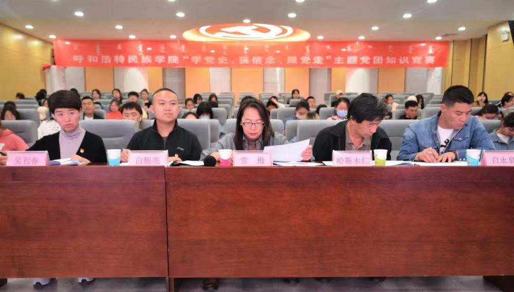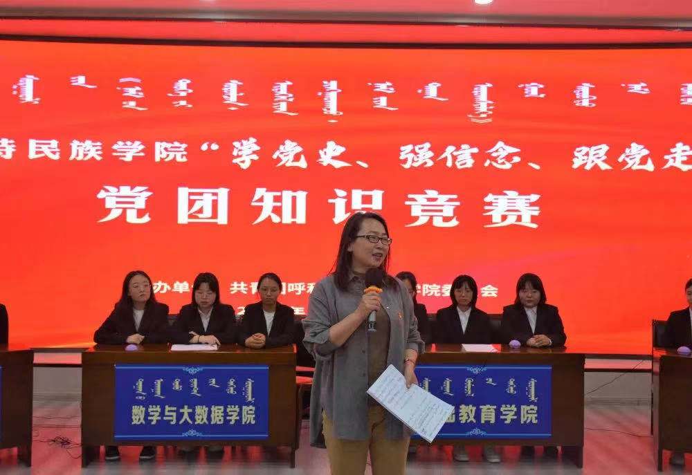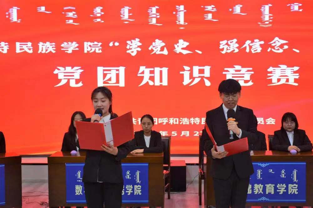 為深入開展黨史學(xué)習(xí)教育,引導(dǎo)廣大青年學(xué)史明理、學(xué)史增信、學(xué)史崇德、學(xué)史力行,于5月27日晚,校團(tuán)委在圖書館一樓報(bào)告廳舉辦了“學(xué)黨史、強(qiáng)信念、跟黨走”主題黨團(tuán)知識競賽決賽。大賽邀請到計(jì)算機(jī)學(xué)院黨總支書記雪梅、學(xué)生工作部副部長白永泉、馬克思主義學(xué)院哈斯木仁教授、美術(shù)學(xué)院黨總支副書記吳利春、團(tuán)委副書記白銀亮擔(dān)任評委。