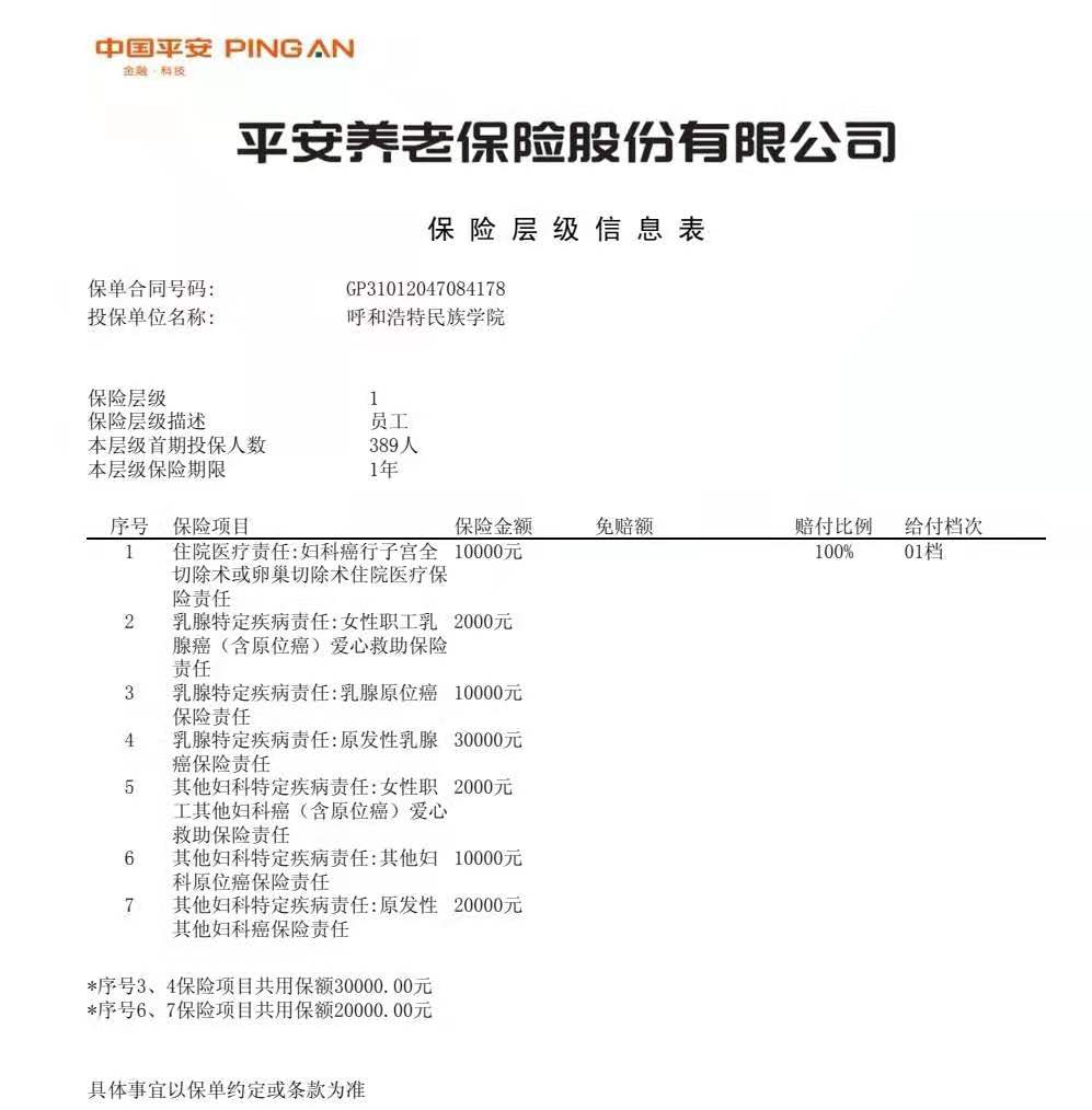 工會(huì)還為全校389名在職女教職工辦理了“特病保險(xiǎn)”,保險(xiǎn)費(fèi)共計(jì)壹萬(wàn)肆仟柒佰捌拾貳元(14782元)全部由學(xué)校工會(huì)支付,保險(xiǎn)期限為1年,自2021年5月23日零時(shí)起至2022年5月22日二十四時(shí)止。