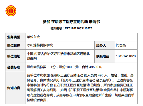 教職工醫(yī)療互助工作是一項(xiàng)堅(jiān)持常態(tài)投入聚沙成塔、幫扶重病職工共渡難關(guān)的工作。始終牢記“無(wú)病我?guī)腿耍胁∪藥臀摇钡淖谥迹瑘F(tuán)結(jié)工人階級(jí)最強(qiáng)大的力量。為充分體現(xiàn)學(xué)校對(duì)教職工的關(guān)愛(ài),今年學(xué)校工會(huì)繼續(xù)為495名教職工統(tǒng)一辦理職工醫(yī)療互助保險(xiǎn),教職工個(gè)人繳納50元,工會(huì)繳納40元,自治區(qū)總工會(huì)補(bǔ)助10元。互助期每期為1年,自2021年6月10日零時(shí)起至2022年6月10日二十四時(shí)止。