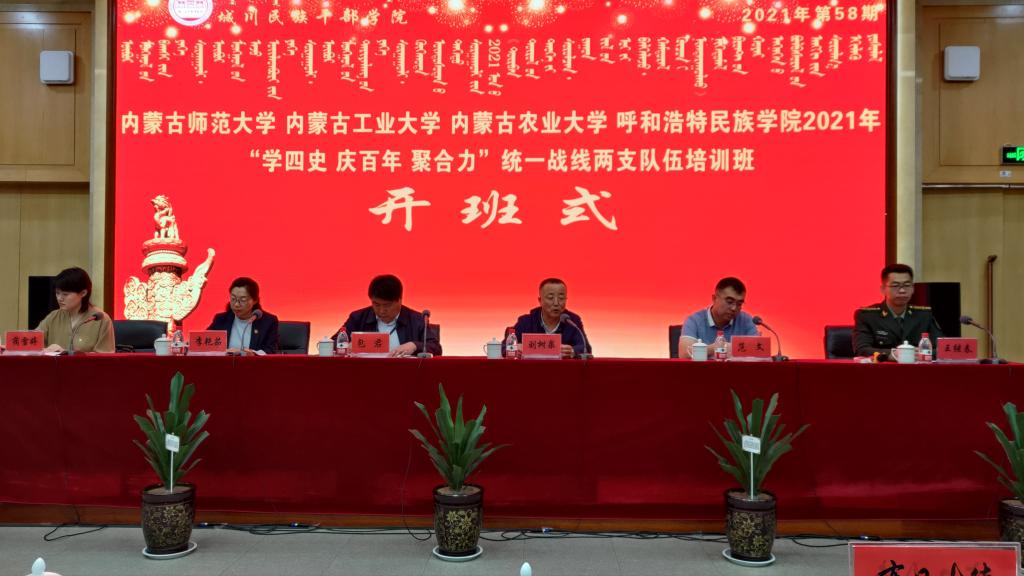在中國共產(chǎn)黨成立100周年之際,為了鑄牢中華民族共同體意識,在統(tǒng)一戰(zhàn)線中扎實深入開展“四史”學(xué)習(xí)教育活動,團(tuán)結(jié)和凝聚統(tǒng)一戰(zhàn)線力量,6月1日——6月4日,呼和浩特民族學(xué)院聯(lián)合內(nèi)蒙古師范大學(xué)、內(nèi)蒙古工業(yè)大學(xué)、內(nèi)蒙古農(nóng)業(yè)大學(xué)在城川民族干部學(xué)院開展2021年“學(xué)四史 慶百年 聚合力”統(tǒng)一戰(zhàn)線兩支隊伍培訓(xùn)。學(xué)校黨委委員、黨委統(tǒng)戰(zhàn)部部長包君帶領(lǐng)學(xué)校統(tǒng)戰(zhàn)干部隊伍和黨外干部隊伍共19名教師參加培訓(xùn)。