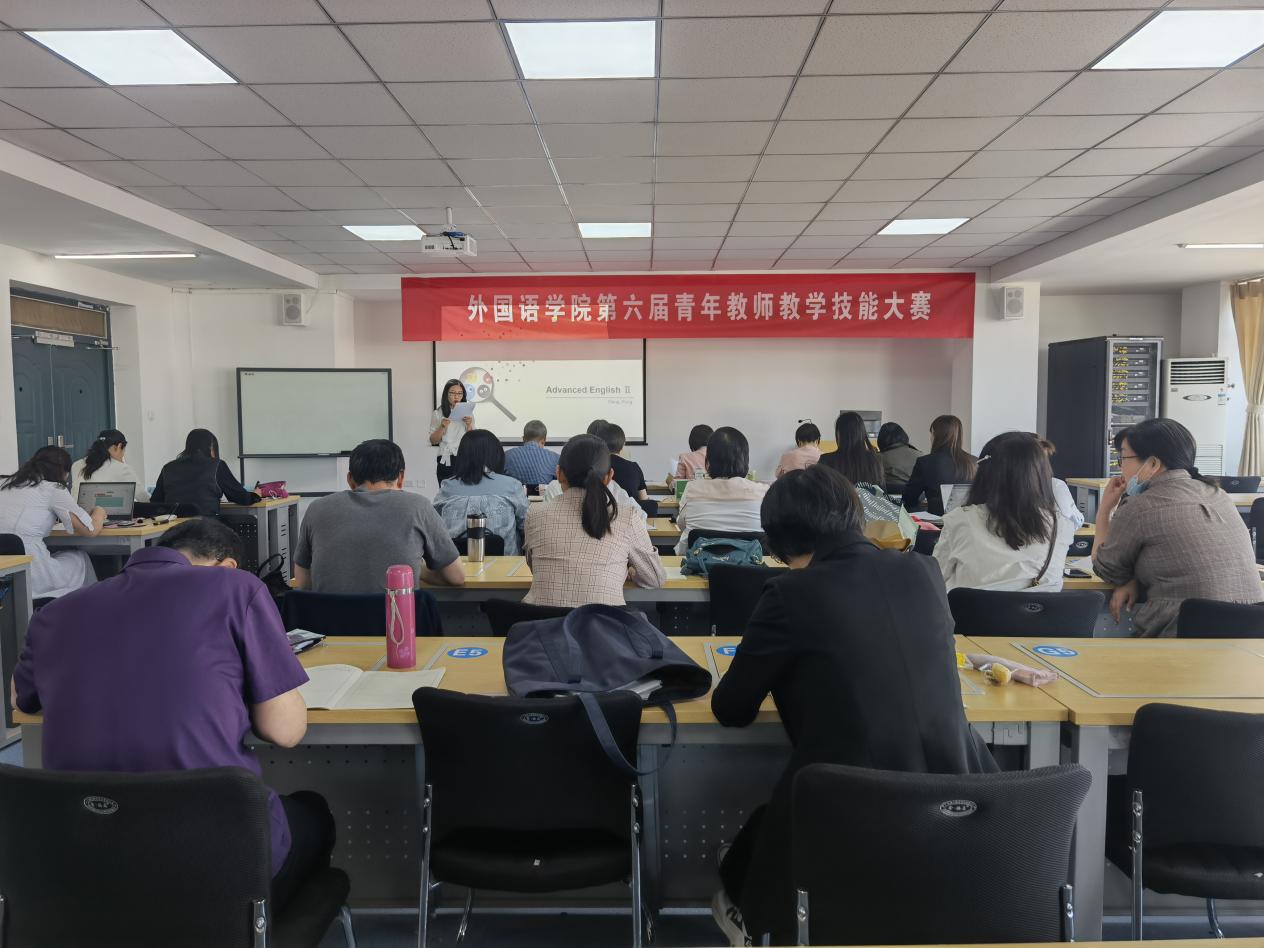 為進一步提高青年教師業務水平,夯實業務基本功,提高青年教師教學質量,外國語學院于6月5日上午在都林樓606教室成功舉辦第六屆青年教師教學技能大賽。此次比賽由陳玉紅副院長擔任評委會主任,督導組6位教授擔任大賽評委,肖查娜院長和學院全體教師現場觀摩了大賽。