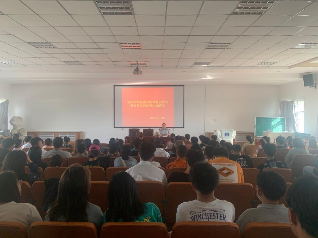 包旭東書記立足于中國共產(chǎn)黨成立100周年的關(guān)鍵節(jié)點(diǎn),圍繞解讀習(xí)近平總書記“七一”重要講話和中央民族工作會議精神,結(jié)合美術(shù)學(xué)院實(shí)際給全體學(xué)生作了“鑄牢中華民族共同體意識教育暨高校宗教政策解讀”的專題黨課輔導(dǎo)。
