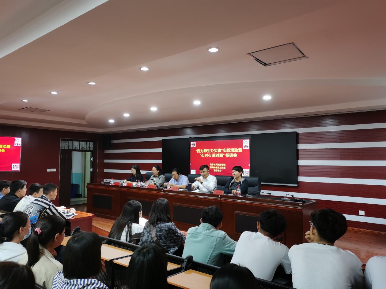 師生“心對心 面對面”活動是數(shù)學(xué)與大數(shù)據(jù)學(xué)院與張海峰名師工作室將黨史學(xué)習(xí)教育轉(zhuǎn)化為推進(jìn)學(xué)生服務(wù)工作不斷提升的實際行動。本著以學(xué)生為主體,以教師為主導(dǎo),以問題為導(dǎo)向,精準(zhǔn)服務(wù)學(xué)生的原則,數(shù)學(xué)與大數(shù)據(jù)學(xué)院始終把促進(jìn)學(xué)生成長成才作為各項工作的出發(fā)點和落腳點。為深入了解大一新生的學(xué)習(xí)生活狀況,切實解決同學(xué)們遇到的實際問題和心理困惑,引領(lǐng)同學(xué)們更好地處理學(xué)習(xí)、生活的關(guān)系,數(shù)學(xué)與大數(shù)據(jù)學(xué)院聯(lián)合張海峰名師工作室于9月15日下午在尚智樓413報告廳舉辦師生“心對心 面對面”暢談會,數(shù)學(xué)與大數(shù)據(jù)學(xué)院院長王海清教授、副院長額爾敦其其格副教授、宣傳部副部長張海峰副教授、輔導(dǎo)員金玲及140多名學(xué)生參加會議,會議由數(shù)學(xué)與大數(shù)據(jù)學(xué)院黨總支副書記郝喜鳳主持。