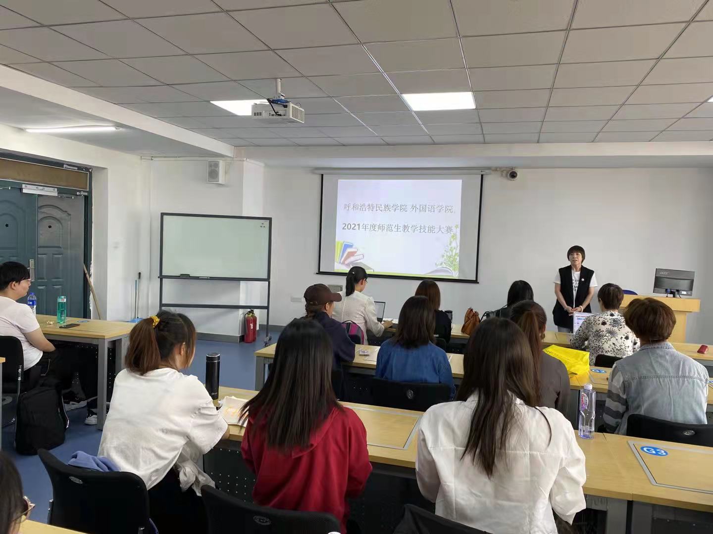 為加強(qiáng)師范生教學(xué)技能訓(xùn)練,提高師范生培養(yǎng)質(zhì)量,9月12日,由外國(guó)語學(xué)院英語教育教研室、學(xué)工辦、團(tuán)總支聯(lián)合承辦的“外國(guó)語學(xué)院2021年度師范生教學(xué)技能大賽”活動(dòng)在都林樓606智慧教室舉行。