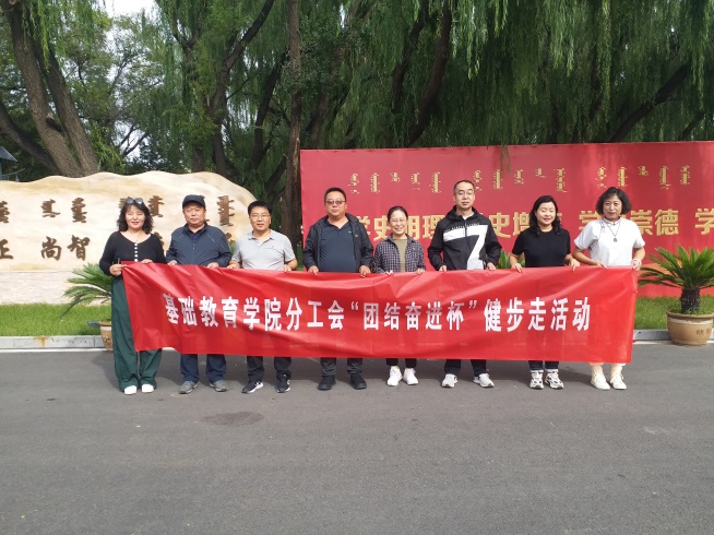 為鑄牢中華民族共同體意識,豐富我院教職工業余生活,引導教職工樹立綠色健康的新理念,展示積極拼搏、昂揚向上的精神風貌,按照《呼和浩特民族學院第38個民族團結進步活動月實施方案》要求,基礎教育學院分工會在學校工會的大力支持指導下,于9月18日下午開展了“團結奮進杯”健步走活動,得到了教職工的積極響應。