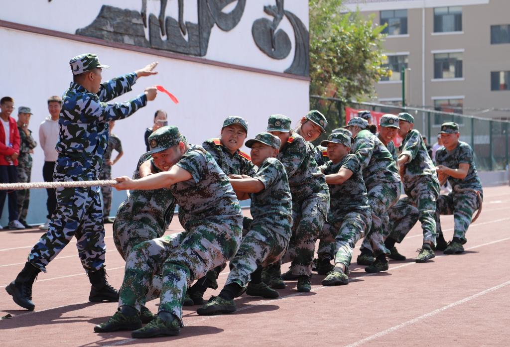 隨后,進行了新生拔河比賽。賽前,各營各連教官和指導員為參賽同學做了詳細的技術指導。比賽中同學們斗志昂揚,信心滿滿,奮勇爭先。經過多輪的淘汰賽,最終化學與環境學院獲得冠軍、經濟管理學院獲得亞軍、音樂學院獲得季軍。