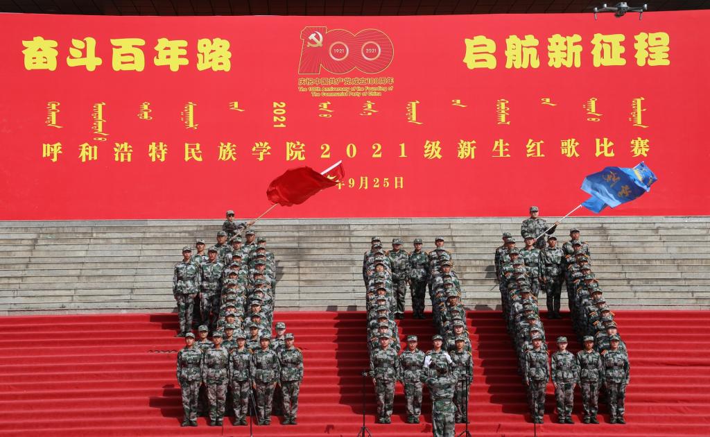 本次共有17支代表隊參賽,每支代表隊演唱兩首紅色軍旅歌曲。比賽由蒙古學(xué)學(xué)院歌曲《我愛我的黨》開場,同學(xué)們通過演繹《愛我中華》《沒有共產(chǎn)黨就沒有新中國》《我和我的祖國》等經(jīng)典歌曲,盡情展示著青春的風(fēng)采。各參賽隊,用不同的方式演繹著同一首歌曲,為歌詠比賽增光添彩。音樂學(xué)院運用民族樂器進(jìn)行歌曲的演奏,嘹亮悅耳的歌聲唱出了青年學(xué)子的朝氣蓬勃。新聞傳媒學(xué)院、法學(xué)院用隊形排列的方式,慶祝黨的一百周年華誕,流露出了民族團(tuán)結(jié)一家親的情感,也激發(fā)了同學(xué)們的愛國之情。最終,音樂學(xué)院獲得第一名,學(xué)前教育學(xué)院獲得第二名,文學(xué)院、新聞傳媒學(xué)院獲得第三名,美術(shù)學(xué)院獲得第四名,外國語學(xué)院、經(jīng)濟管理學(xué)院、民族學(xué)學(xué)院獲得第五名,基礎(chǔ)教育學(xué)院、體育學(xué)院、公共管理學(xué)院獲得第六名。