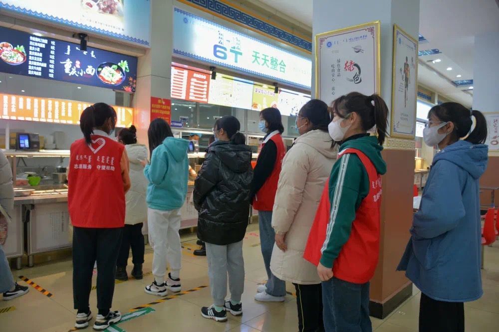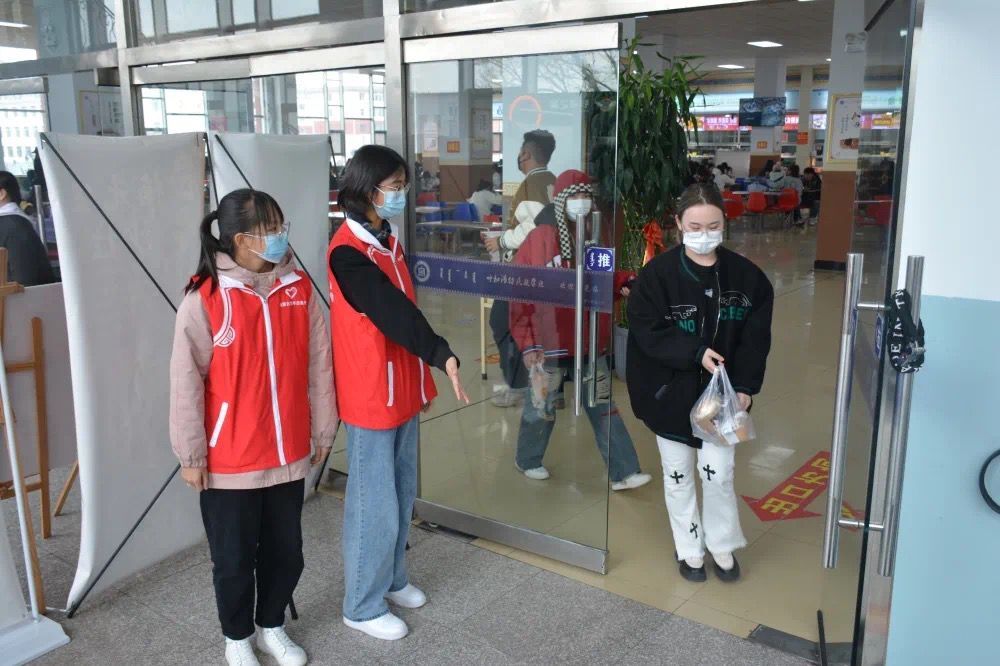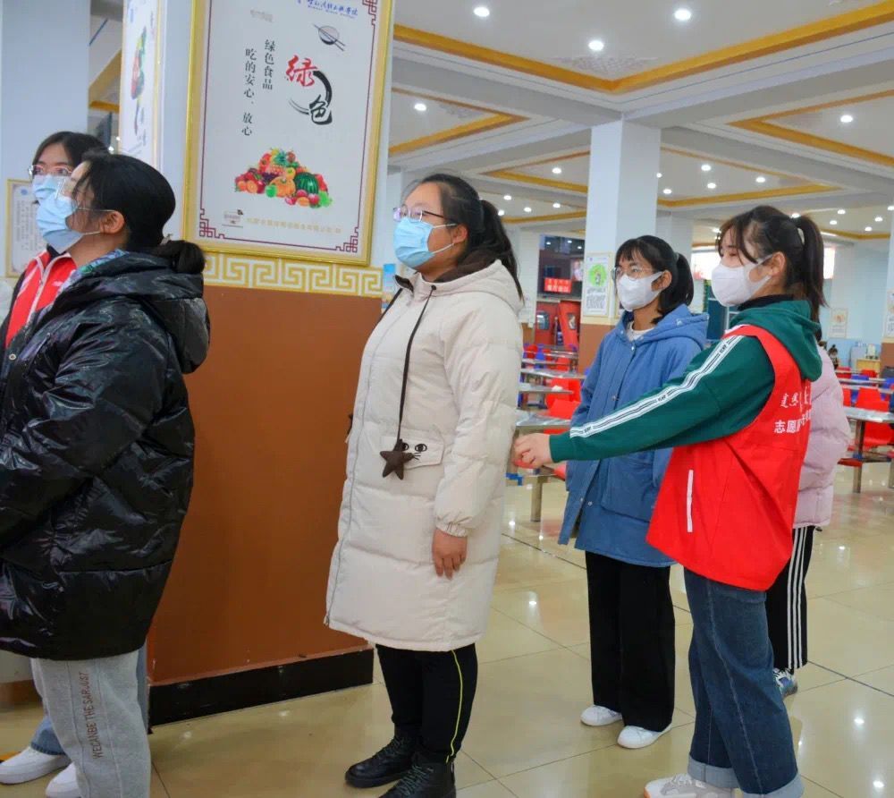志愿者們每天定點(diǎn)開(kāi)展志愿服務(wù)工作。提醒用餐師生佩戴好口罩有序進(jìn)餐廳,保持間隔距離,以實(shí)際行動(dòng)為廣大師生營(yíng)造了良好的就餐環(huán)境。